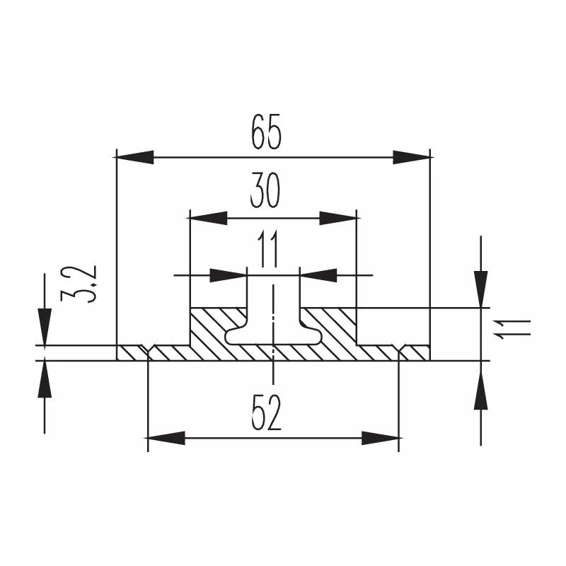 Beskrivning Airlineskena för montage ovanpå golvet. Har breda flänsar på var sida som underlättar montering med skruv eller nit.