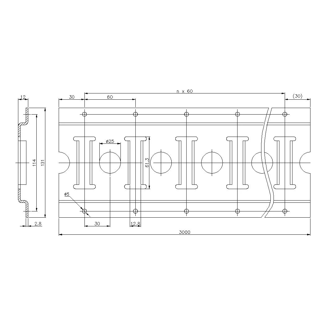 Combiskena aluminium L=3000 mm | 25 mm hål | Surrningsskena | AW-6082 T6