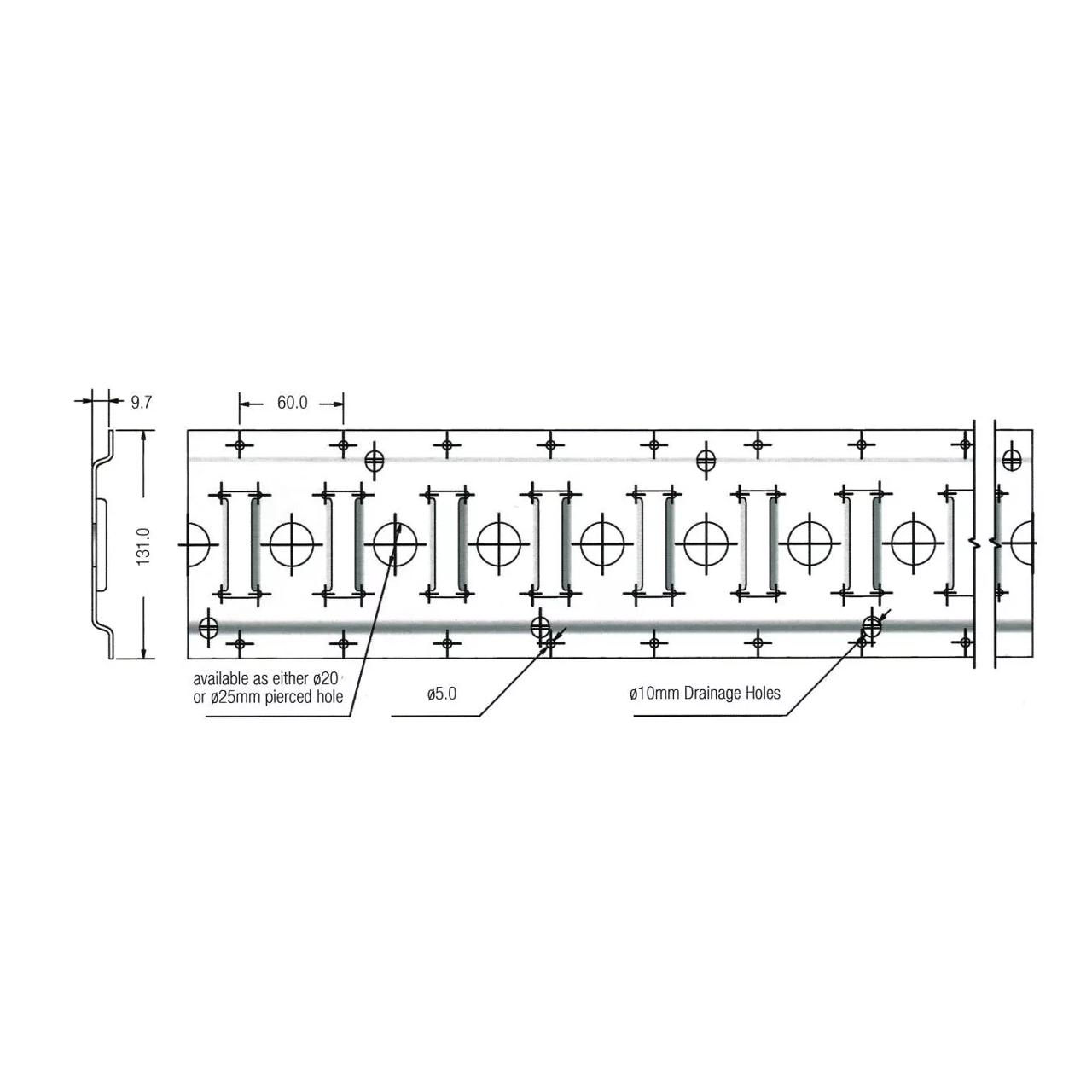 Combiskena stål 2,3 mm L=3000 mm | med vattenavlopp | hål 25mm vit | Surrningsskena