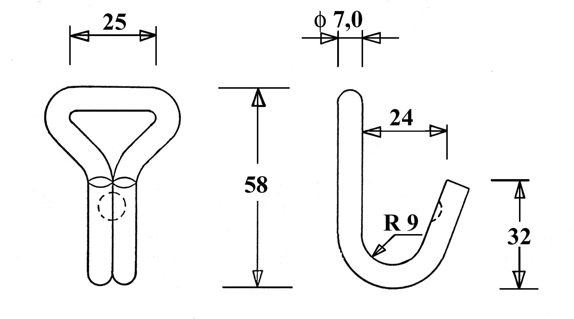 Rostfri dubbel trådkrok avsedd att användas i surrningar.