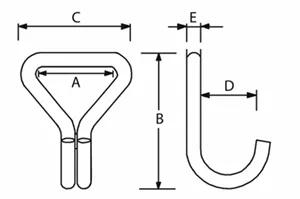 Rostfri dubbel trådkrok avsedd att användas i surrningar.
