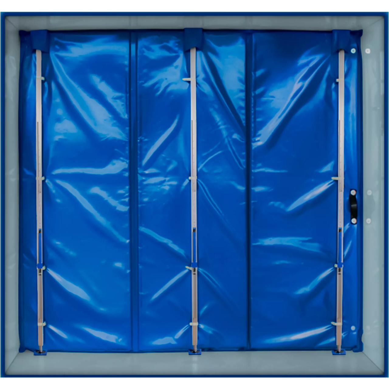 Walk in Wall | 3-Section foldable partition | B2500XH2800mm | Polyester weave, blue | 3 overhead pockets for cargo bars | Walking section, right with handle | Thermal conductivity 0,042 W/mK