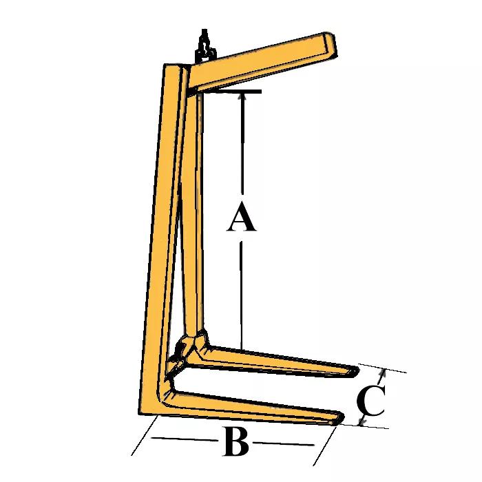Beskrivning Justerbar pallgaffel för lyft och hantering av pallar med kran. Pallgaffeln är självbalanserande när den belastas med minst 20% av maxlast.