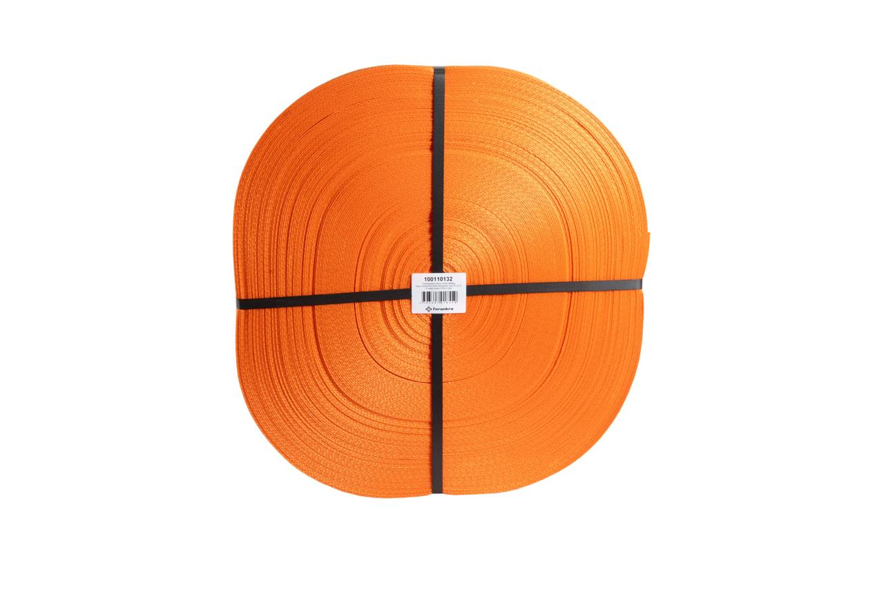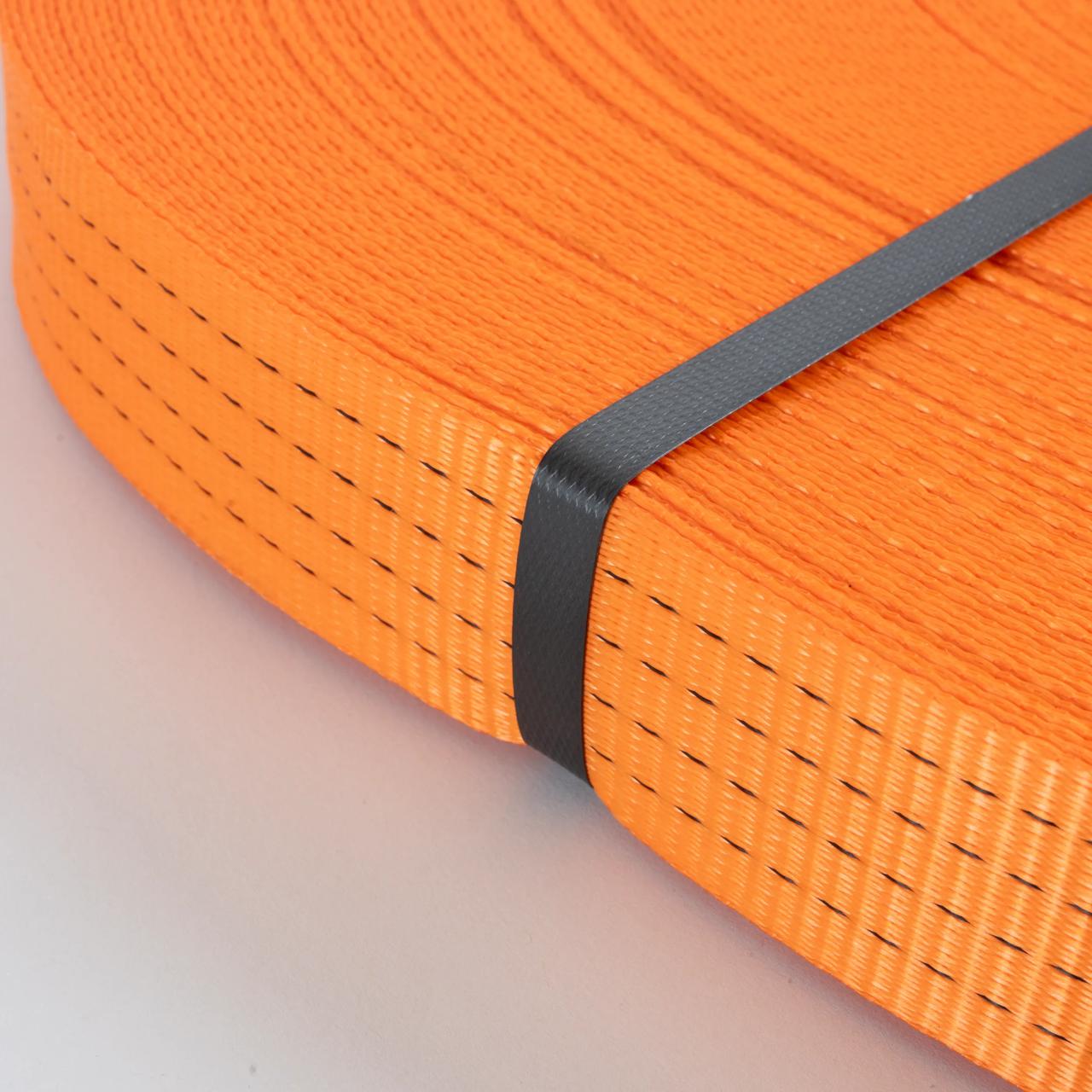Polyesterband 50mm | Brott: 4800kg | Färg: Orange,RAL:2008 | Elongation: max 5% at LC | 4 svarta ränder | 100m / rulle