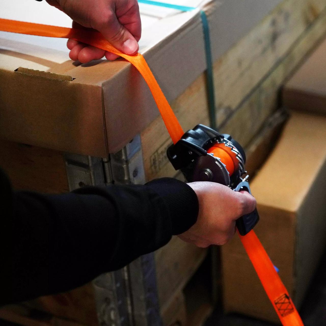 Alla ingående komponenter är utprovade och av mycket god kvalitet för att garantera en lång livslängd och hög säkerhet. Ytbehandlingen av metalldelar är helt Cr 6+ fri. Bandet är tillverkat av höghållfast polyester med en tät vävstruktur, vilket gör surrningen mycket smidig och slitstark.