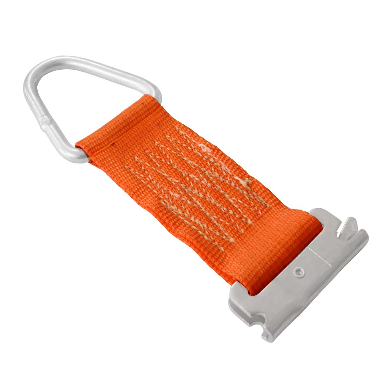 Rope tie off 45mm | Längd: 0,2m | LC:1000daN | D-ring i ena ändan | Ändbeslag med spärr i andra | Färg: Orange
