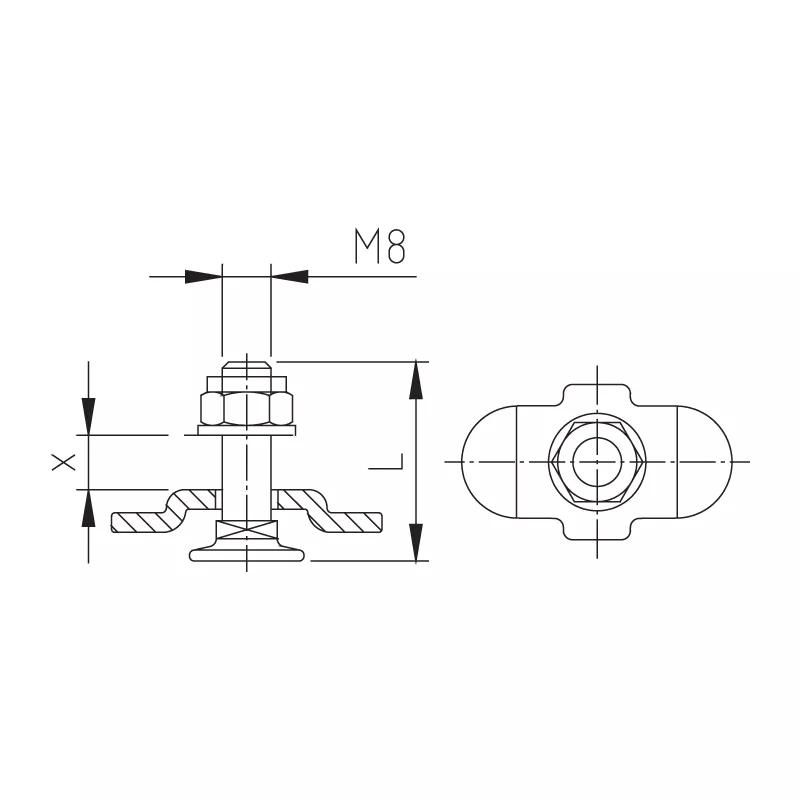 Skruvbeslag 0-17 mm med M8 mutter | galvaniserad LC=1000 daN rakt drag