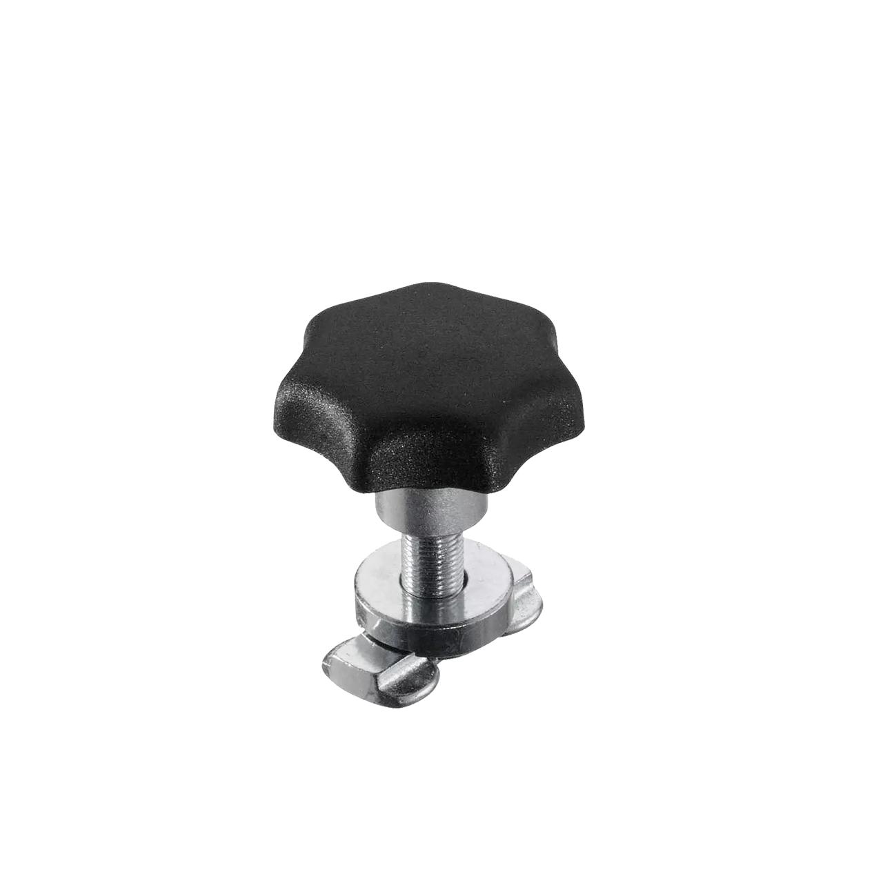Skruvbeslag för infästning i airlineskena, med klämmvidd 0-7 mm & plastvred.