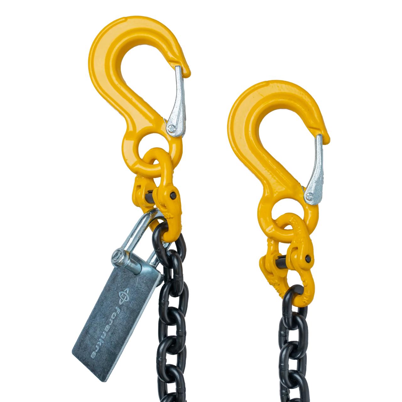Surrningskätting 13mm krok-krok |med kopplingslänk | Märkbricka monterad med schackel | klass: 8 - Kortlänk | Brott: 21,6ton | LC: 100kN | Längd: 5,0meter | Färg: Svart/Gul | Spärrkrok 13mm