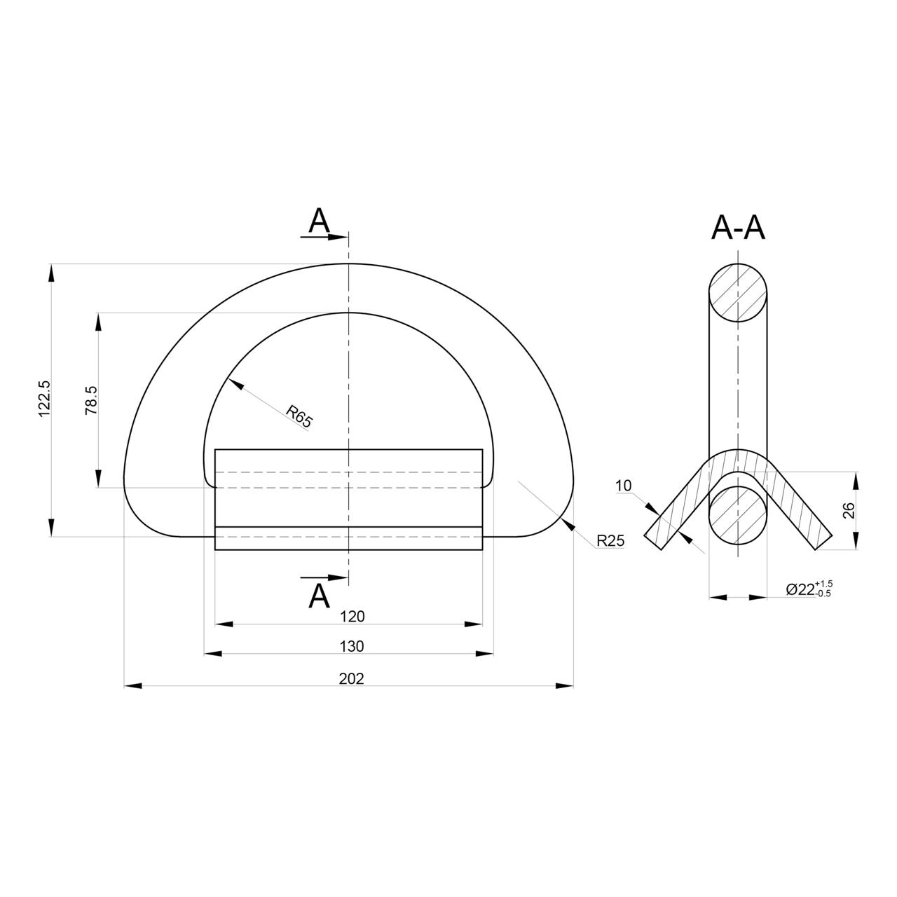 Surrningsögla | D-ring | MSL/LC 180kN | MBF 360kN | Med svetsbygel | Vikt: 2,6 kg | 202x122mm Diameter: 25mm | Smitt stål| Obehandlad