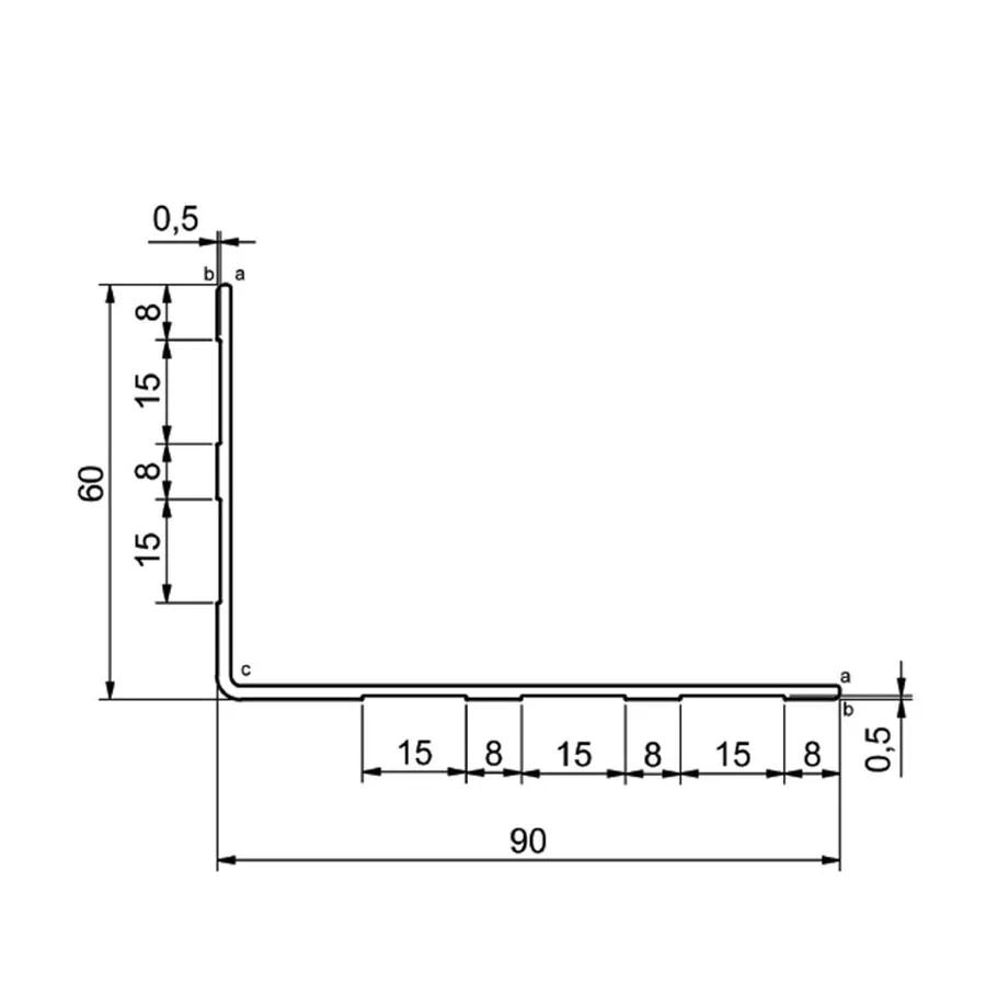 Beskrivning Aluminiumprofil framtagen för montering vid skåpbyggnationer, Räfflad utsida och flat insida.